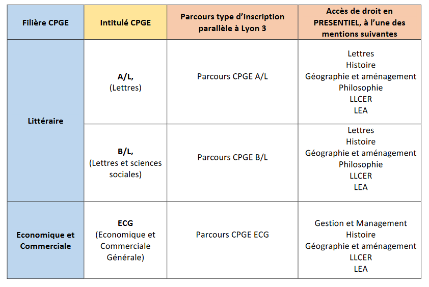 - Les filières CPGE proposées à l’université Lyon 3 et leurs correspondances