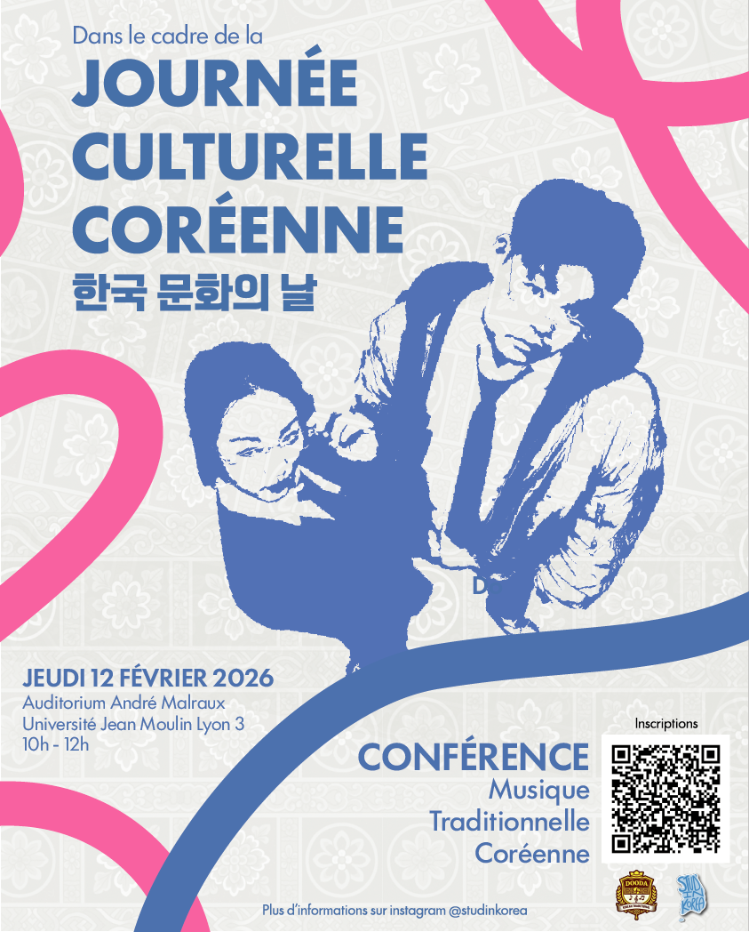 Vous souhaitez tout savoir sur les secrets de la musique et des traditions coréennes ? L’association Stud’in Korea vous invite à un moment privilégié avec le groupe DooDa ! Au programme : Une conférence immersive pour découvrir l’envers du décor de leur art, suivie d’une performance live qui saura vous captiver !