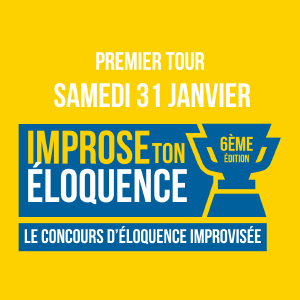 Improse Ton Éloquence est un concours d'éloquence en 4 tours encadrés par des jurés bienveillants, et mettant au défi la capacité d'improvisation des participants, avec des discours de moins en moins préparés au fil des étapes. Le premier tour du concours aura lieu le 31 janvier.