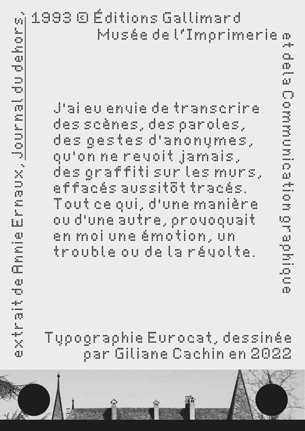 Pour l’occasion, le Musée de l’Imprimerie et de la Communication graphique a édité une série d’affiches reprenant des citations de l’ouvrage. Chaque extrait a été travaillé par des artistes avec une typographie unique pour lui donner une identité propre.
