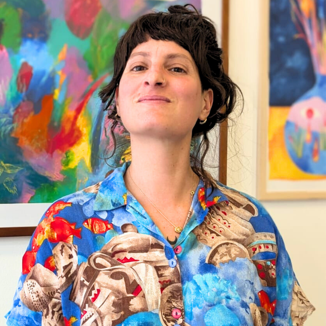 Lola Tinnirello alias Laho, est illustratrice, designer graphique et artiste tatoueuse. À travers fresques, peintures et dessins, elle crée des figures hybrides et chimériques évoluant dans des univers oniriques, aquatiques et cosmiques. Son travail explore les frontières poreuses entre humain et animal, féminin et masculin, réel et imaginaire, en développant un langage symbolique nourri de mystique et de mythologies